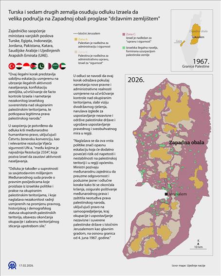 Turska i sedam drugih zemalja osuđuju odluku Izraela da velika područja na Zapadnoj obali proglase "državnim zemljištem"