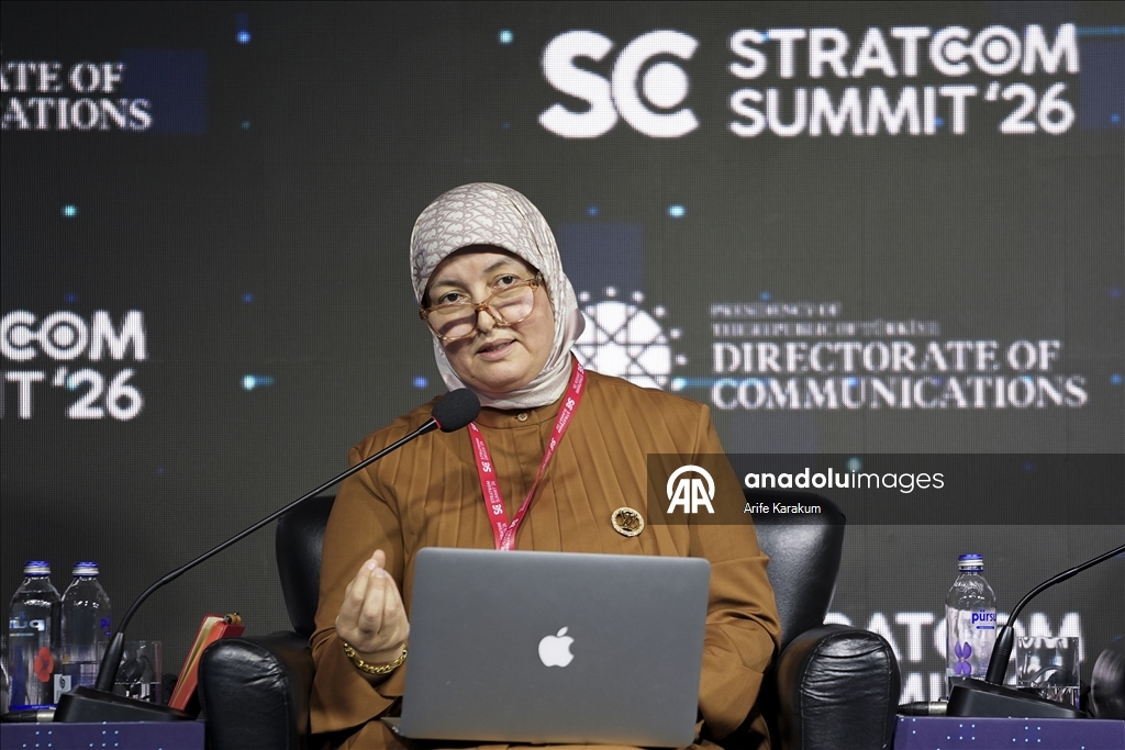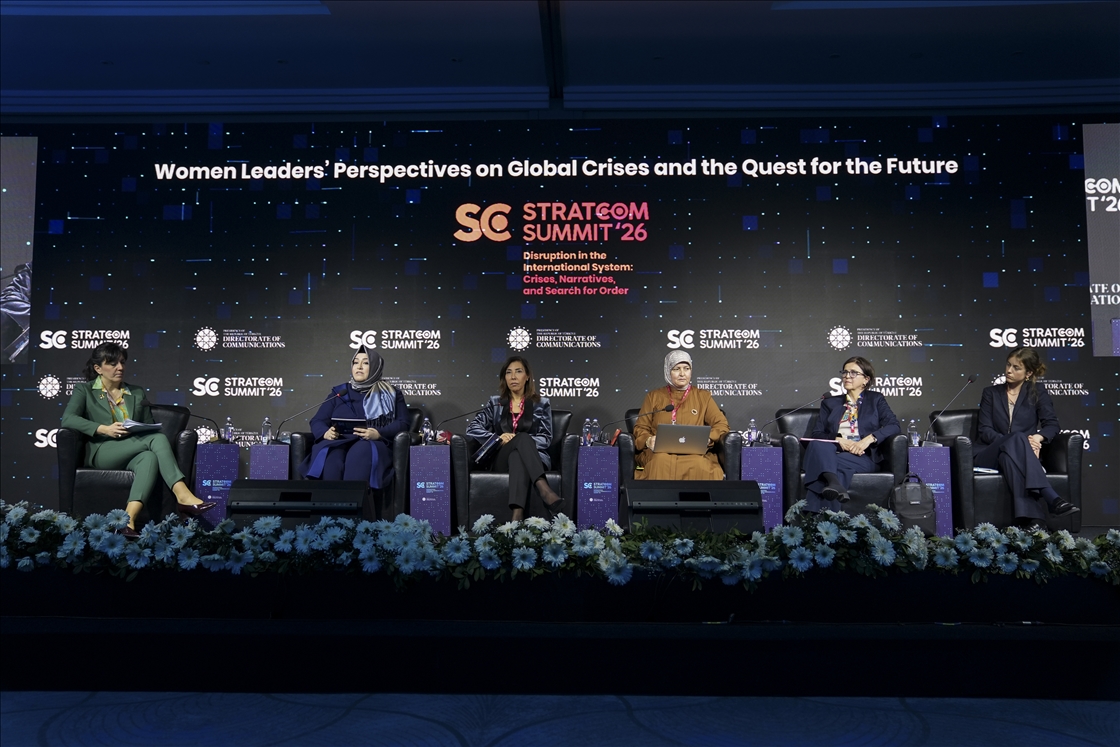 Dr. Nihal Eminoglu, članica Evropske komisije protiv rasizma i netolerancije (ECRI) i članica fakulteta Univerziteta u Ankari; Halima Kaakour, članica Libanskog parlamenta; Rejhana Dervišević, članica Parlamenta Bosne i Hercegovine; Majda Alfallah, članica Visokog državnog vijeća Libije; Cecily Bayliss iz Forward Thinkinga; i Sena Nur Celik Kanat, članica AK Party Istanbula, prisustvuju Međunarodnom samitu o strateškim komunikacijama (STRATCOM) 2026. pod nazivom Perspectives of Women Leaders' Perspectives on Global Crisiss and the Quest for the Future, koji je organizovala Direkcija za komunikacije 28. marta 2026. u Istanbulu, Turska.