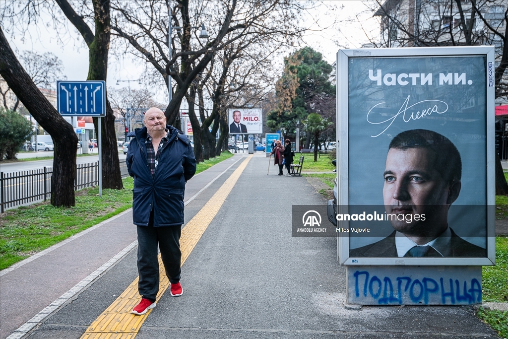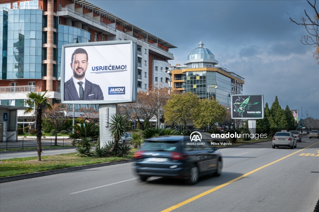 Podgorica, Crna Gora- Predizborna kampanja uoči predsjedničkih izbora u Crnoj Gori uveliko je u toku, a na ulicama gradova širom zemlje od prvog dana izborne kampanje postavljeni su plakati i bilbordi sa kandidatima i političkim porukama ( Milos Vujovic - Anadolu Agency )Milos Vujovic