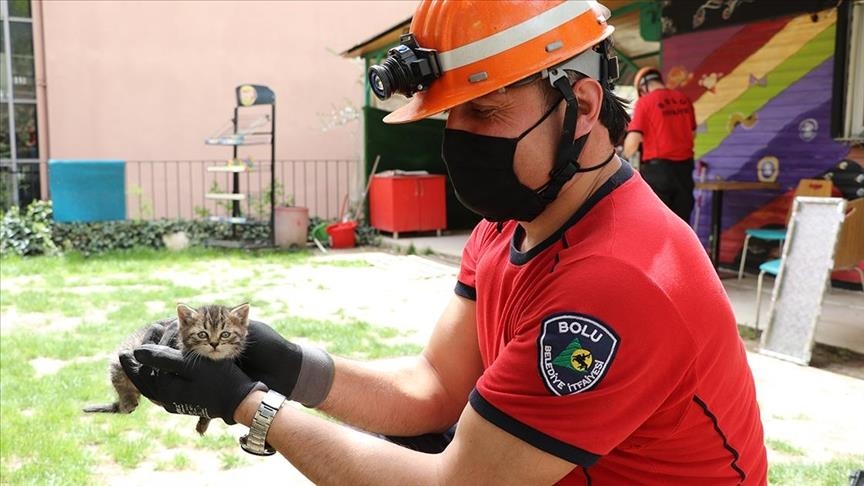 The incident took place in Tabaklar in the northwestern Bolu province when bystanders realized three kittens were trapped on a rooftop and could not get down, so they called local firefighters for help.