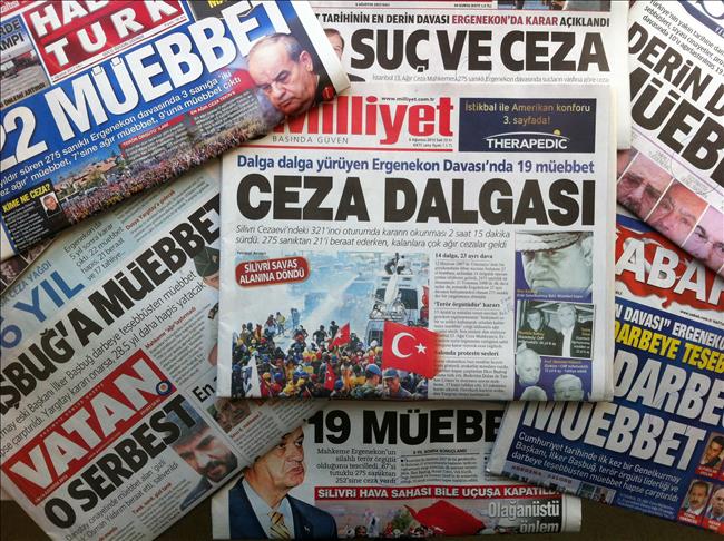 Turkish dailies covered Tuesday Turkish court's final verdicts over Ergenekon trial in which 275 defendants including army officers, lawyers, academics and journalists were sentenced, and Fenerbahce-Salzburg second leg game in the UEFA Champions League third qualifying round on August 6.