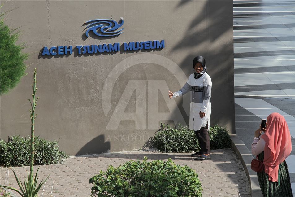 ACEH, INDONESIA - 19 AGUSTUS: Warga mengunjungi Museum Tsunami Aceh yang berlokasi di Banda Aceh, Indonesia pada 19 Agustus 2019. Museum ini dibangun pada 2007 bertujuan untuk mengedukasi masyarakat tentang gempa dan tsunami Aceh 2004 silam, serta menjadi tempat mitigasi bencana alam. ( Khalis Surry - Anadolu Agency )Khalis Surry