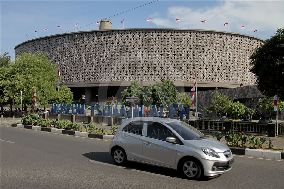 Mobil melintas di depan Museum Tsunami Aceh yang berlokasi Banda Aceh, Indonesia, Senin 19 Agustus 2019. Museum ini dibangun pada 2007 bertujuan untuk mengedukasi masyarakat tentang gempa dan tsunami Aceh 2004 silam, serta menjadi tempat mitigasi bencana alam.Khalis Surry