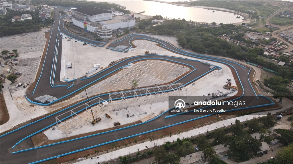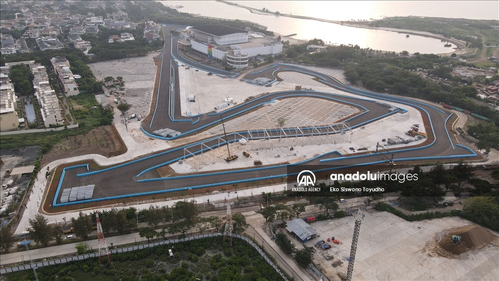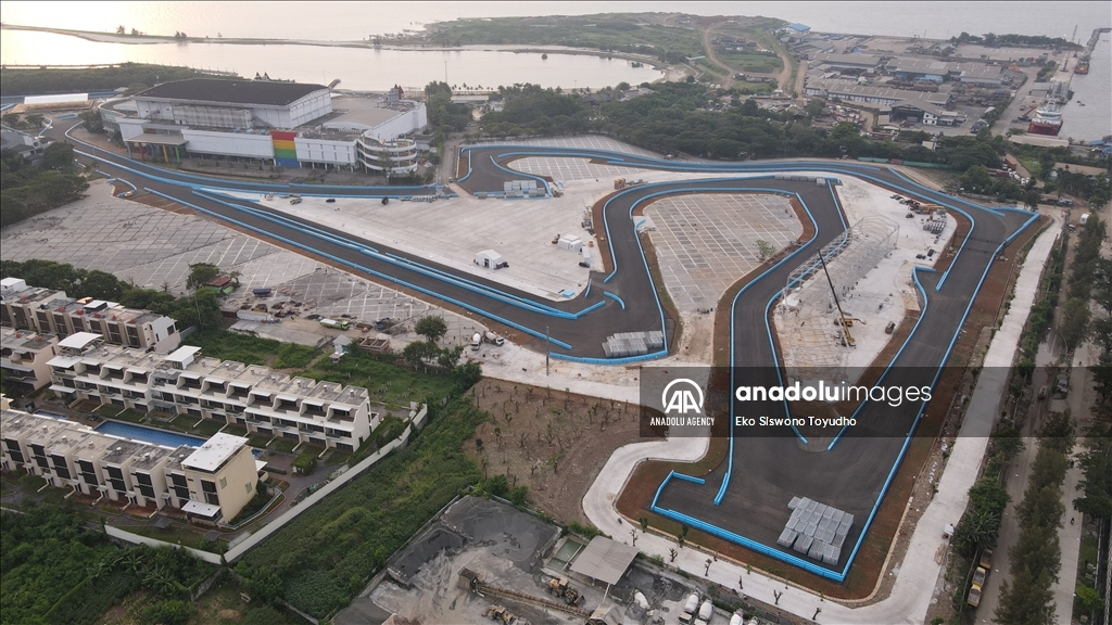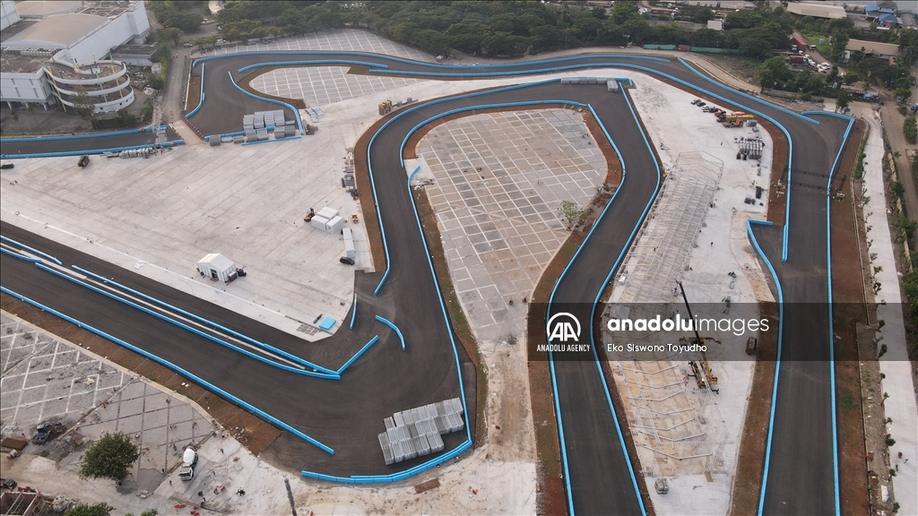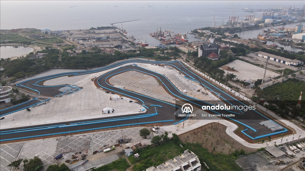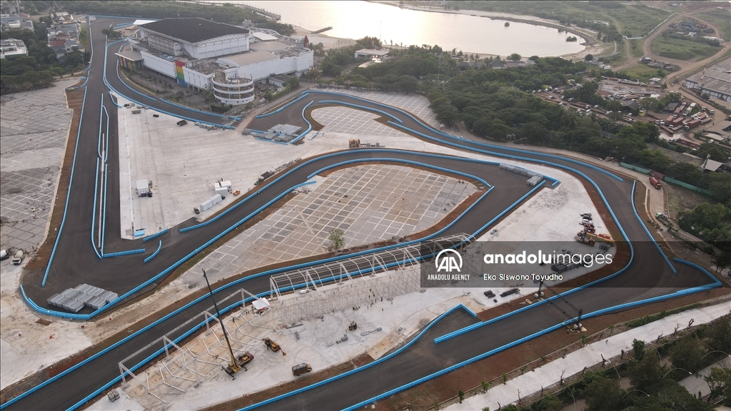 Foto udara menunjukkan Jakarta International E-Prix Circuit (JIEC) yang memiliki lintasan 2.400 meter yang terdiri dari 18 tikungan dan lintasan lurus sepanjang sekitar 527 meter di Jakarta, Indonesia pada 10 Mei 2022. Indonesia akan menggelar balapan Formula E yang digelar pada 4 Juni mendatang di Jakarta International E-Prix Circuit (JIEC). Jakarta, termasuk 9 kota di dunia yang akan menjadi tuan rumah balapan Formula E tahun ini.