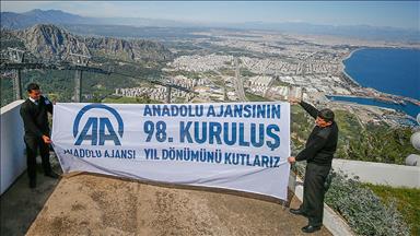 Teleferikle çıkılan, deniz ve dağ manzaralarıyla kenti kuş bakışı izleme imkanı sunan Antalya Büyükşehir Belediyesi Tünektepe Sosyal Tesisleri'nde, Anadolu Ajansının 98. kuruluş yıl dönümünü kutlayan pankart açıldı.06 Nisan 2018