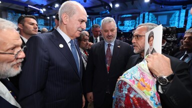 İran heyeti, Parlamentolar Arası Birlik'in (PAB) 152'nci Genel Kurulu'nun açılış törenine İran'daki okul katliamında yaşamını yitiren bir öğrencinin kanlı sırt çantasıyla geldi.16 Nisan 2026