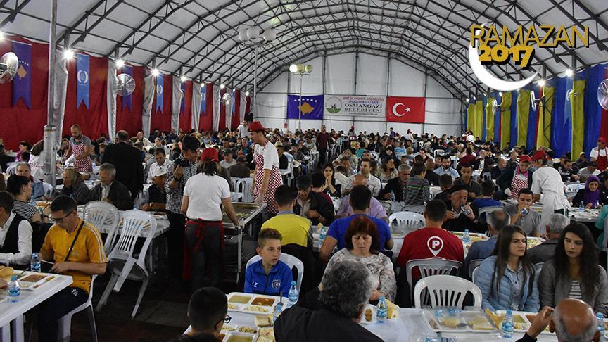Osmangazi Belediyesi tarafından, Kosova'nın başkenti Priştine'de kurulan çadırda bin 500 kişiye iftar verildi.
