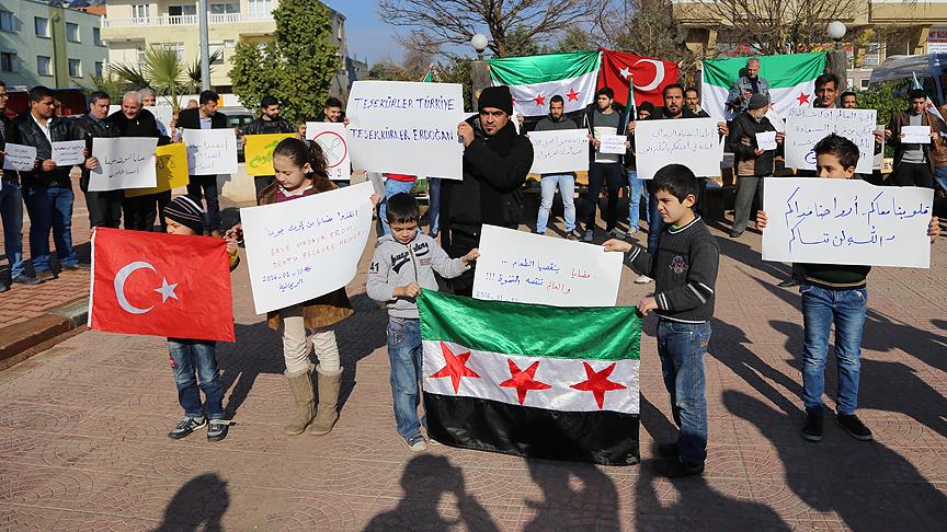Reyhanlı Belediyesi önünde toplanan aralarında kadın ve çocukların da olduğu Suriyeliler, ellerinde Türkçe, Arapça, İngilizce ''Madaya kalbimizde, unutmayacağız, Madaya açlıktan ölüyor, abluka kalksın" yazılı döviz ve pankart açtı.