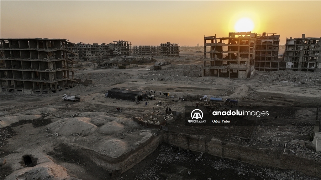 Suriye'de 61 yıllık kanlı Baas rejimi ve 53 yıllık Esed ailesi iktidarının devrilmesinden sonra hayat normale dönerken Suriye'nin başkenti Şam'a bağlı Zemelka mahallesinde evleri harabeye dönen aileler çadırda yaşamını sürdürüyor.
