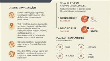 Hazırlanan taslak çalışmaya göre, yerleştirme işlemleri öncesi liselere ilişkin bazı değişiklikler yapılması öngörülüyor. Bu kapsamda, Anadolu öğretmen liseleri, "sosyal bilimler", "fen" ya da "Anadolu liselerine" dönüştürülecek. Mesleki ve Teknik Eğitim Genel Müdürlüğü ile Din Öğretimi Genel Müdürlüğüne bağlı bütün okullar, "mesleki ve teknik Anadolu lisesi" ve "Anadolu imam hatip lisesine" dönüştürülecek. Böylece bütün okul türleri bu sene itibarıyla Yerleştirmeye Esas Puan ile öğrenci alacak.