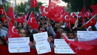 "Şehitler ölmez, vatan bölünmez" sloganları atan taraftalar, Türkiye'nın güney sınırında oluşturulmaya çalışılan terör koridorunu yok etmek, bölgeye barış ve huzur getirmek amacıyla başlattığı Barış Pınarı Harekatı'na destek verdi.