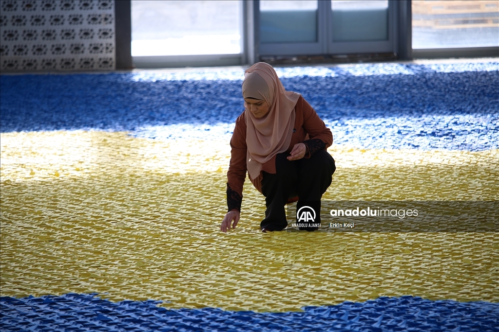 Kosovalı öğretmen origami ile yaptığı 1216 metrekarelik bayrakla Guinness'e girmeyi hedefliyor