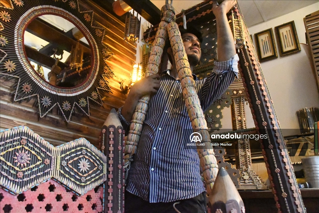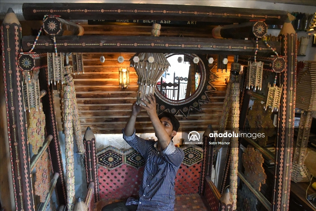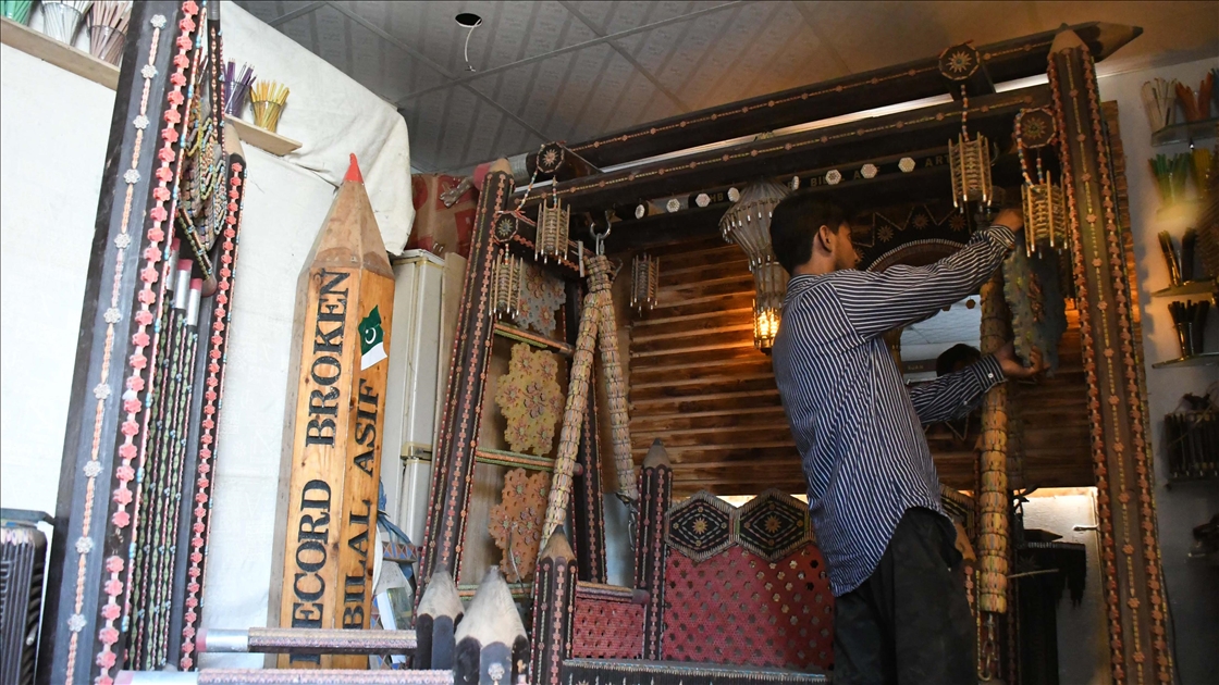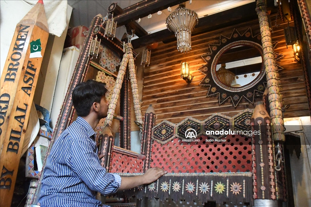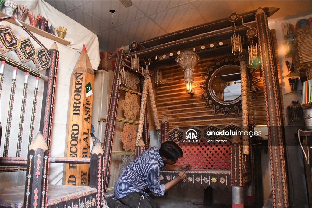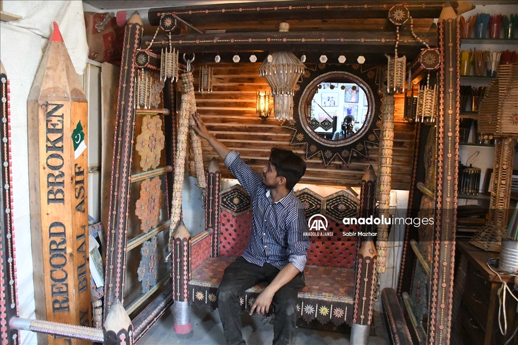 Pakistanlı sanatçı 45 bin kurşun kalem kullanarak yaptığı salıncakla Guinness Rekorlar Kitabı'na girmeyi bekliyor