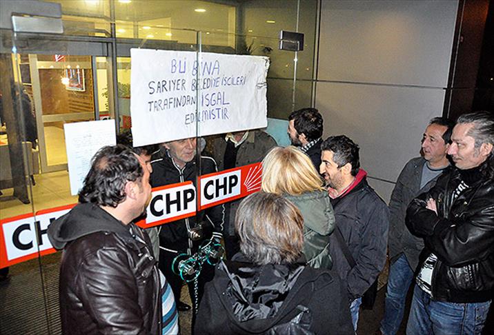 CHP'li Sarıyer Belediyesi'nin Park ve Bahçeler Müdürlüğü bünyesinde taşeron şirkette çalışırken işten atıldıklarını ve tazminatlarını alamadıklarını öne süren 16 işçi, Levent'teki CHP İl Başkanlığı binasına geldi.