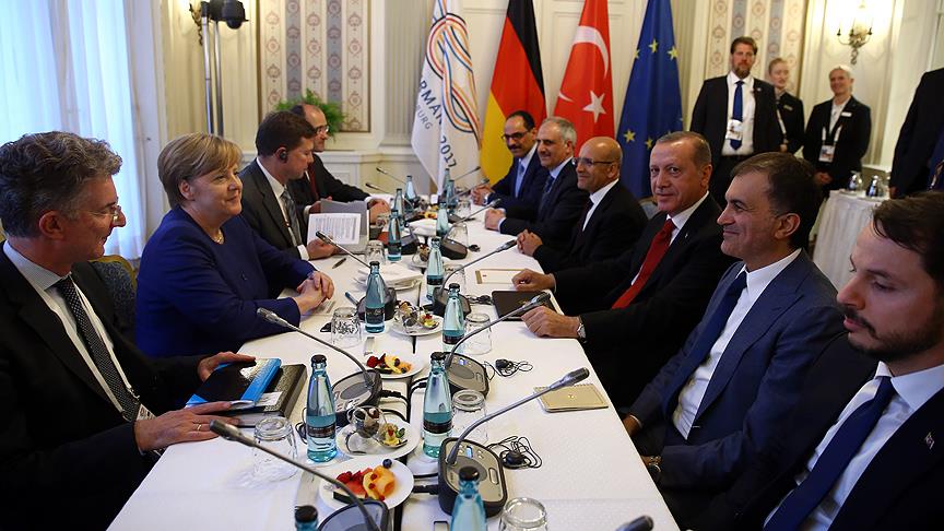 Erdoğan, G20 Liderler Zirvesi'ne katılmak için geldiği Hamburg'da, ilk olarak Merkel ile bir araya geldi.