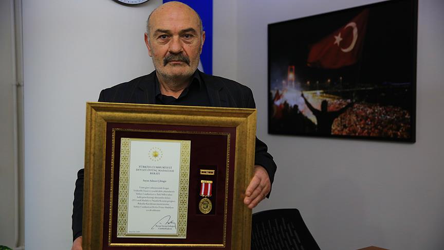 Fetullahçı Terör Örgütü'nün (FETÖ) 15 Temmuz'daki darbe girişimi sırasında Taksim Meydanı'nda halka ateş açan darbeci askerlerin tüfeklerinden şarjörleri çıkarırken kolundan vurulan ve ağır yaralanan kahraman gazi Adnan Çilingir, Devlet Övünç Madalyası ile ödüllendirildi.