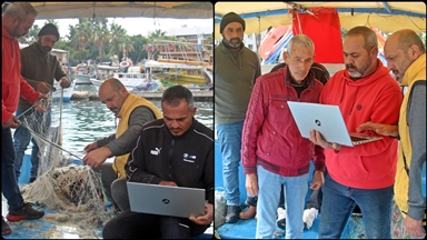 7 Eylül Mahallesi Kervanyolu Caddesi'ndeki balıkçı Müjdat Hoştekeli, tekneleriyle önceki gün Ege Denizi'ne açıldıklarını ve ağlarını topladıklarında küçük balıklar içindeki dev orkinosu gördüklerini söyledi.